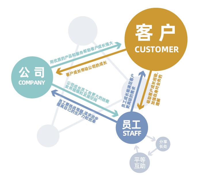 激情敬業(yè) 責(zé)任 - 負(fù)責(zé)是做好工作的第一要求 創(chuàng)新 - 擁抱變化,主動創(chuàng)新,為客戶創(chuàng)造更多價值 成長 - 在變化中求自我成長,自我激勵 熱情 - 以樂觀的精神和必勝的信念投入工作中 |